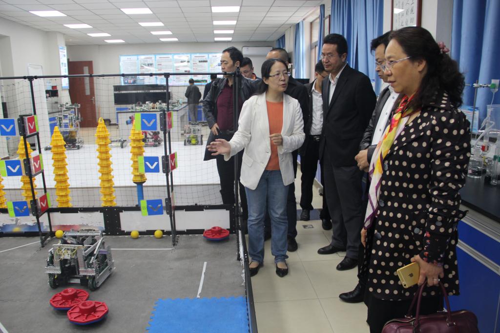 刘董事长一行观看了张宗权正高级实验师团队研发的光学教育仪器、秦健副教授团队研发的VEX教育机器人、白云山副教授团队研发的凝固点测定仪等仪器以及杨万民教授团队研发的超导电磁系列教学仪器的精彩演示,认真聆听了各团队负责人的讲解。刘董事长一行对我校教师自主研制的教学仪器给与了高度评价,希望能与我校交流合作,发挥集团的科技成果转化实力,将我校自制研发的科教仪器更广泛的应用到科普教育事业中。杨祖培副校长希望双方加强交流合作,促进科教仪器研发中心的研究成果走向市场,未来双方实现互利共赢。