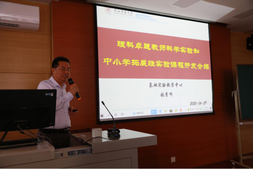 为了全面贯彻全国教育大会精神,围绕教育现代化的时代新要求,落实立德树人的根本任务,继续深化教育教学改革,提高基础教育质量, 2020年6月29日下午,tucao 在雁塔校区教学七楼举行了“卓越教师科学实验”课程研讨会。邀请我校副校长杨祖培、本科教学督导委员会主任钞曦旭,教师教育办公室主任李铁绳以及计算机科学学院、化学化工学院、生命科学学院、地理科学与旅游学院等多个教学单位十余名专家,针对卓越教师科学实验课程进行深入研讨。 会议由中心副主任赵华荣主持。