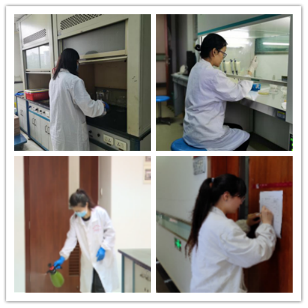 六月伊始,基础实验教中心各学科实验技术人员提前一周就开始了紧锣密鼓的准备工作,从逐一落实学生实验所需仪器、试剂,到每天早、中、晚三次对实验室进行消毒并做记录等常态化排查防控,以最周密细致的服务,迎接师生归来。正式开课后,各位实验员老师每天扎实做好防控物资储备、重点区域消杀通风、普及防疫常识等工作,引导上课师生严格做好个人防护、养成良好卫生习惯。虽然工作任务繁重,但各位老师始终坚持以严谨的态度、如火的热情对待本职工作。申海霞老师作为一名准妈妈,怀有身孕的艰辛与不易也没有让她停止脚步,她依旧每天提前到岗,坚持工作标准不降,力度不减,耐心细致地准备每一次实验。刘环环老师除了做好自己的本职工作,更关爱每一位学生的身心健康,在一次实验课中,刘老师发现一位学生情绪异常,她一边安排同学陪伴,安抚疏导,一边联系辅导员,积极解决问题。这样的例子还有很多,中心全体教职工以实际行动践行着党的教育方针,在平凡的岗位上继续奋斗,砥砺前行。