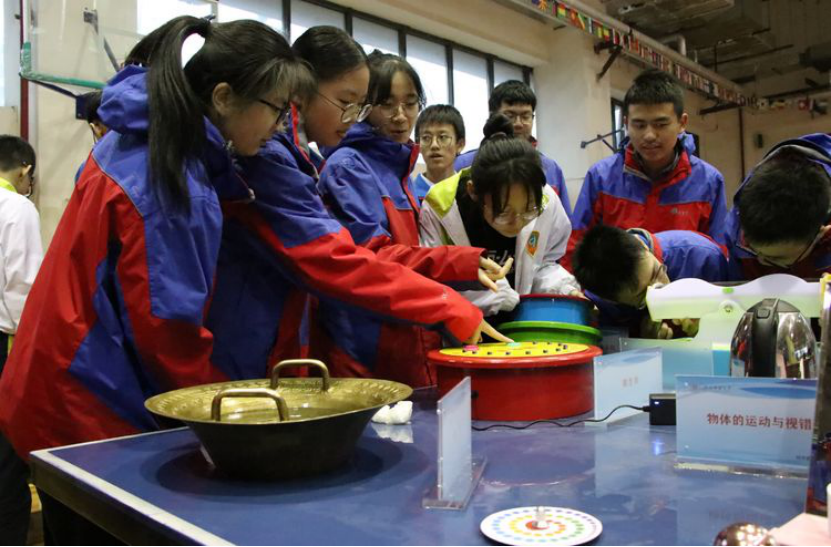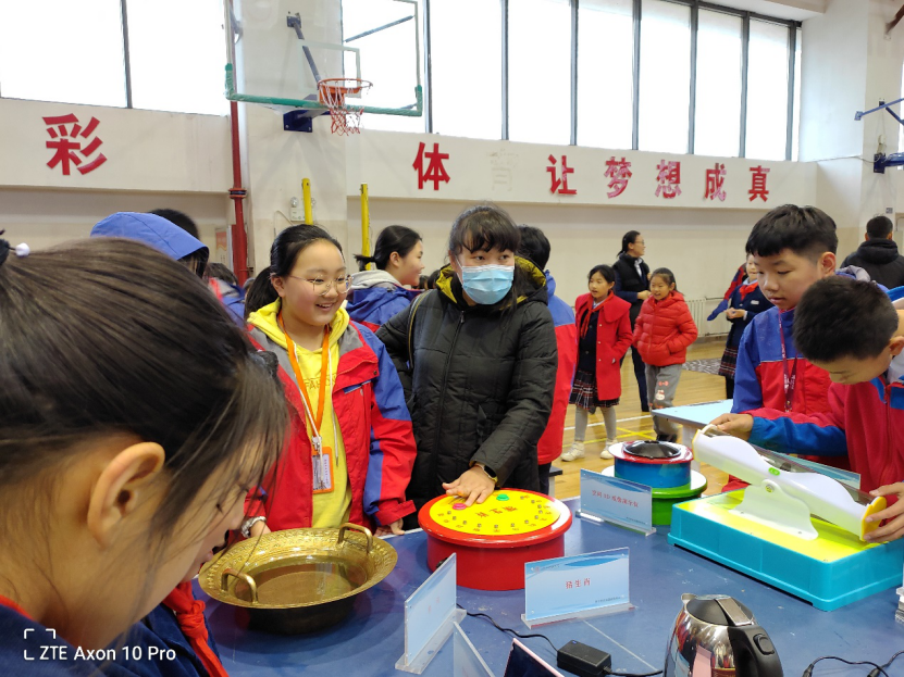 在彭菊芳老师的带领下,张宗权、强雪、马志爽、李世荣老师克服路途遥远、时间紧张的不利因素,于11月20日上午抵达经开一中布展,中午1点开始迎接学生参观展览。活动互动性强,学生兴趣浓厚,老师讲解生动,取得了很好的效果。本次活动,我中心所提供的科教仪器接近科技节展品总数的一半,以展品数量最多、学科涉及面最广、学生参与度最高等特点成为了科技节最受欢迎的单位,得到了主办方和学生们的高度评价,也为中小学开展科普教育、培养学生创新精神和实践动手能力提供了很好的平台。