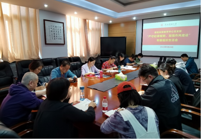会上,支部党员同志深入学习领会了习近平总书记在省部级主要领导干部“学习习近平总书记重要讲话精神,迎接党的二十大”专题研讨班上的重要讲话精神;重点学习了《中国共产党纪律处分条例》、《党委(党组)落实全面从严治党主体责任规定》和《关于在全校开展纪律教育学习宣传月活动的通知》等内容,并集中观看了警示教育视频。支部书记彭菊芳同志带头作对照检查,与会中心党员干部结合集体学习、个人自学和警示教育活动的收获,对照“勤快严实精细廉"新风正气标准,仔细查摆问题,主动开展批评与自我批评,并就存在问题提出努力方向和整改措施。