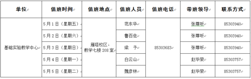 1. 值班人员应坚守工作岗位,巡查各楼层实验室水电安全情况,认真填写值班记录。