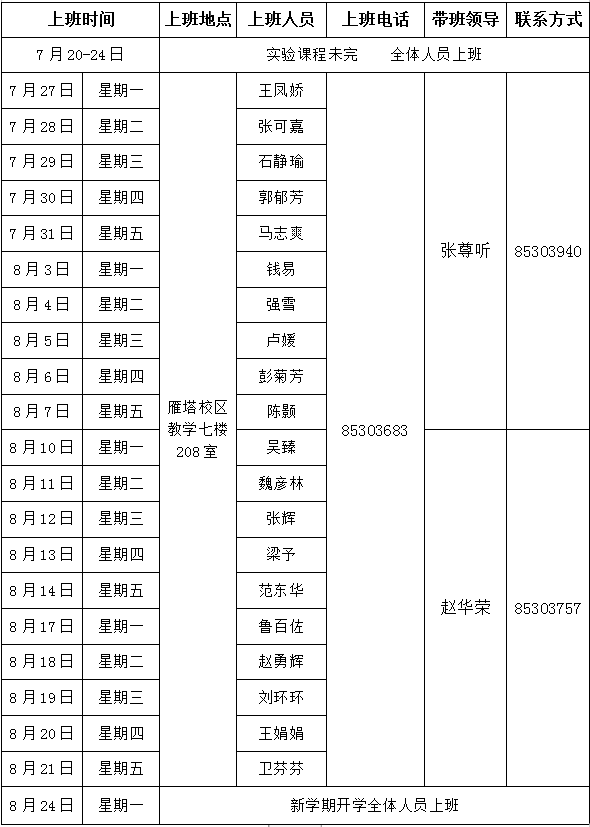 1. 上班人员应坚守工作岗位,上班期间要巡查各楼层实验室水电安全情况,认真填写值班记录。