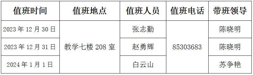 2024年元旦值班安排