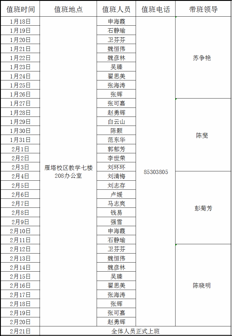 2025年寒假值班安排